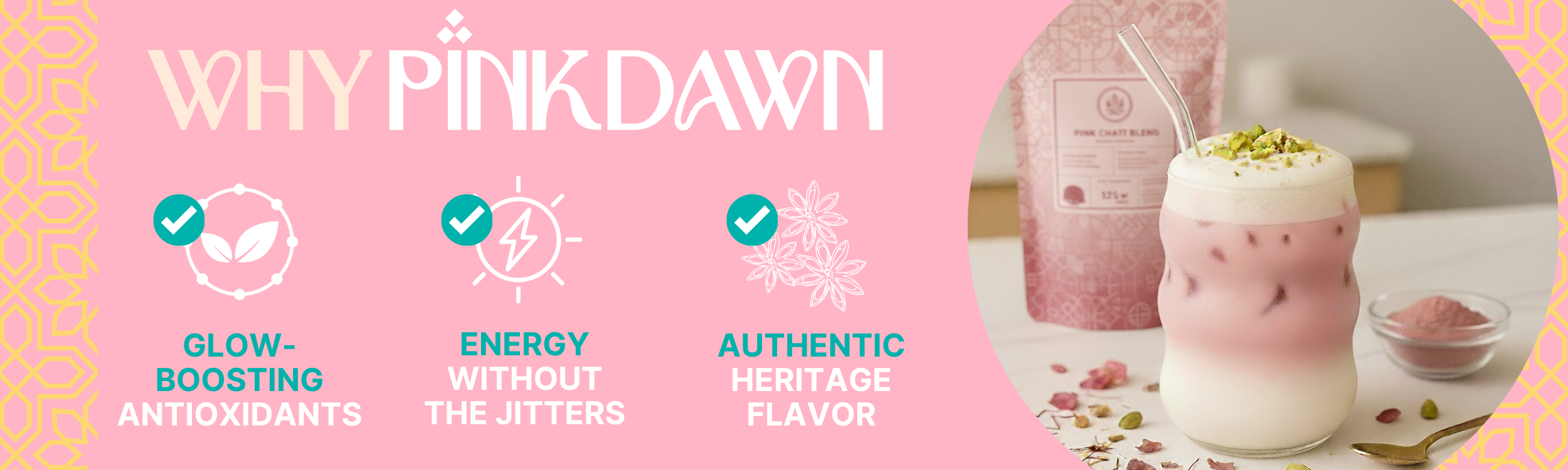 Pink chai is a naturally pink-hued milk tea originating from the Himalayas - traditionally consumed in areas of Afghanistan, Kashmir and Pakistan. Each of these regions has its own version of this creamy, pink drink, but all share a similar, time-consuming cooking process. Depending on the region, it can be made with a combination of boiled green tea, spices, salt, sugar, milk and sometimes clotted cream. Some other names for this antioxidant-rich tea are Kashmiri chai, qaimaq chai, noon chai, sheer chai, or gulabi chai.